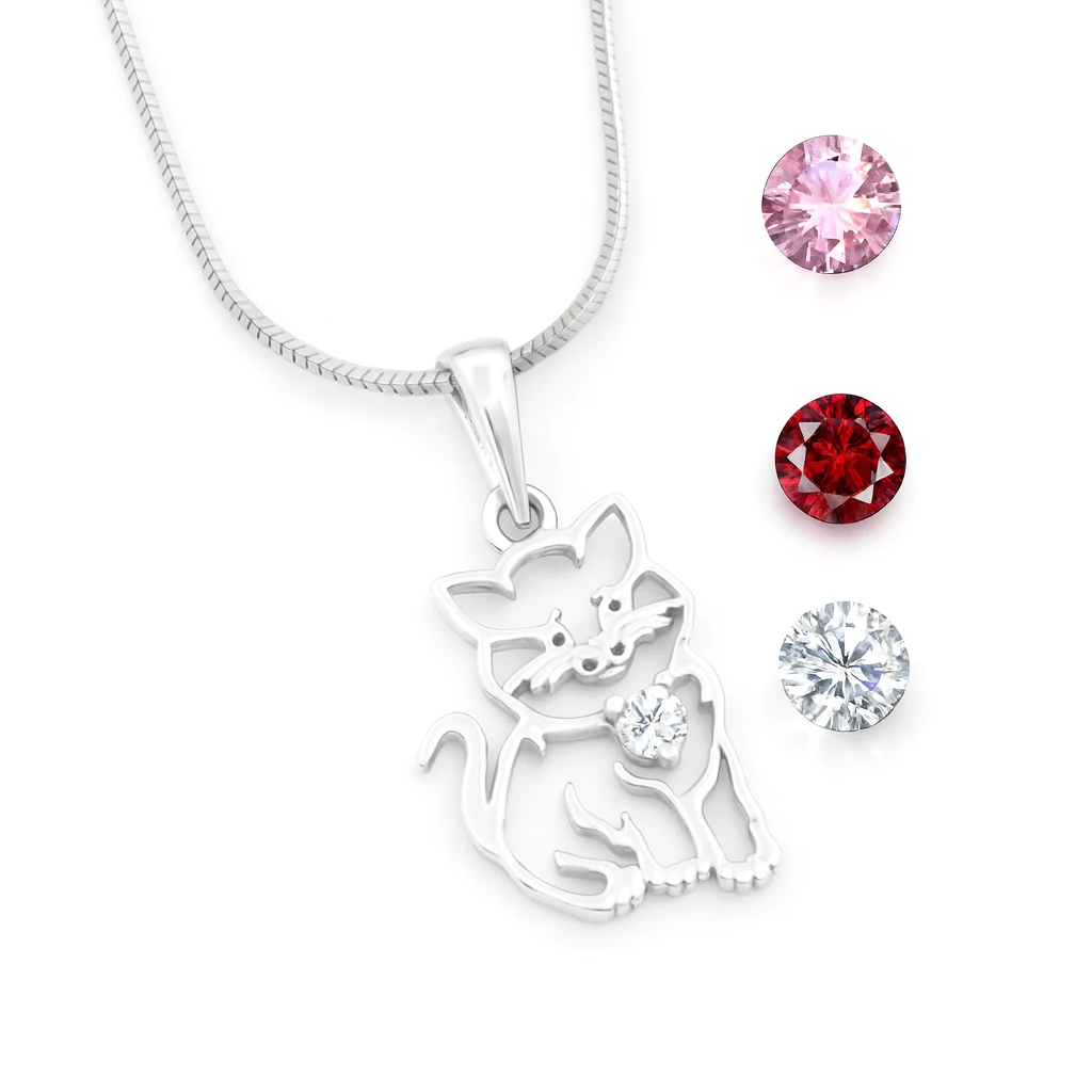 Krásný stříbrný přívěšek se zirkonem nebo granátem, který se skvěle hodí i pro děti. Roztomilá kočička nejen pro milovníky těchto zvířátek.