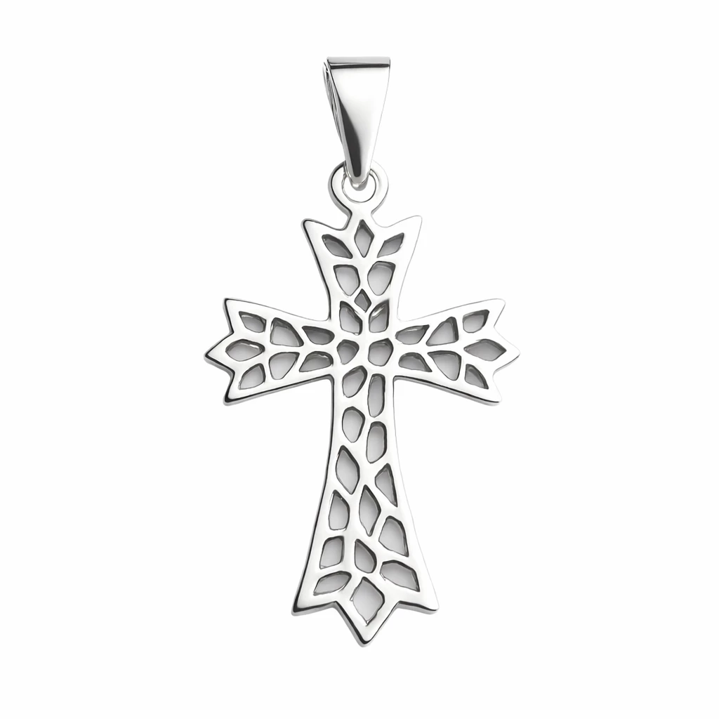Stříbrný přívěsek zdobený kříž Lucas ze Stříbra Ag 925/1000 je elegantním šperkem s výraznou symbolikou. Jemné průřezy vytvářejí originální dekorativní vzor, který dodává kříži lehkost a moderní charakter.