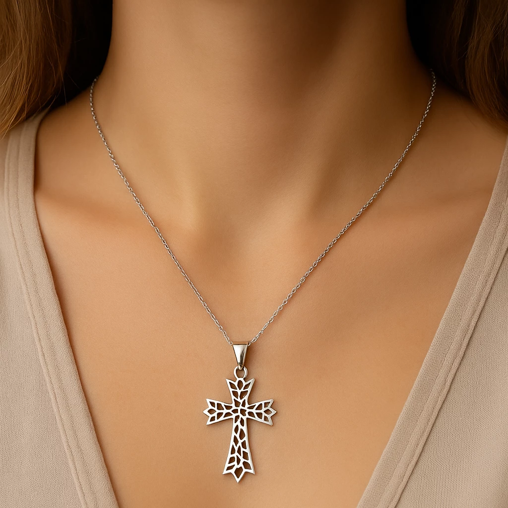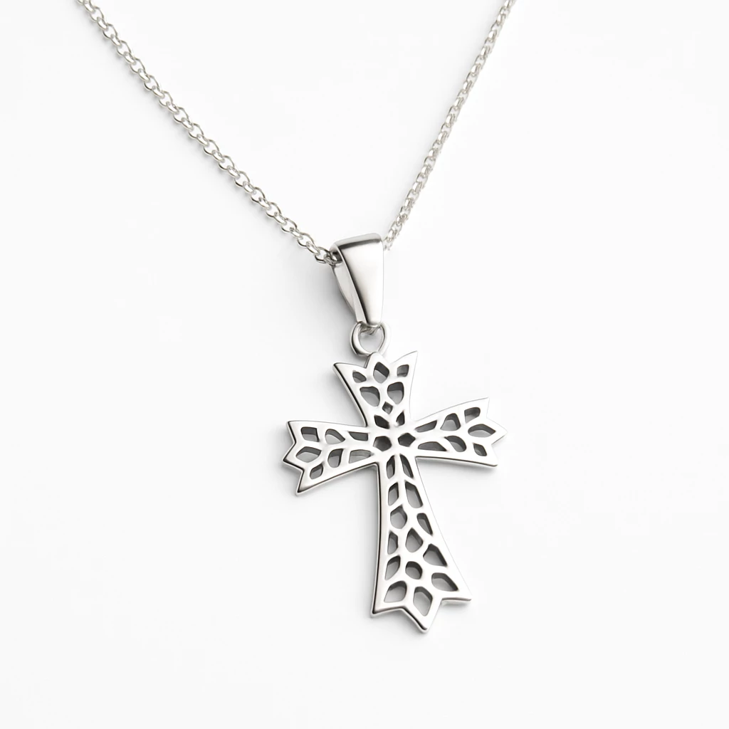 Krásný stříbrný zdobený křížek v podobě přívěsku na krk. Vhodný pro každého - muže i ženy pro jejich ochranu.