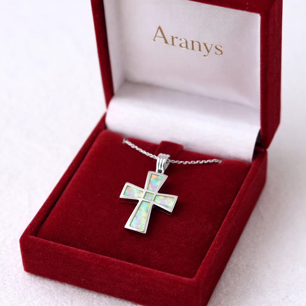 Stříbrný přívěsek kříž s bílým opálem Joel je vyroben z kvalitního Stříbra Ag 925/1000 s povrchovou úpravou rhodiování, díky které je odolnější vůči ztmavnutí a krásně se leskne. Výrazný křížový motiv je vyplněný laboratorním opálem v bílé barvě, který okouzlí jemnou duhovou hrou odlesků při každém pohybu.