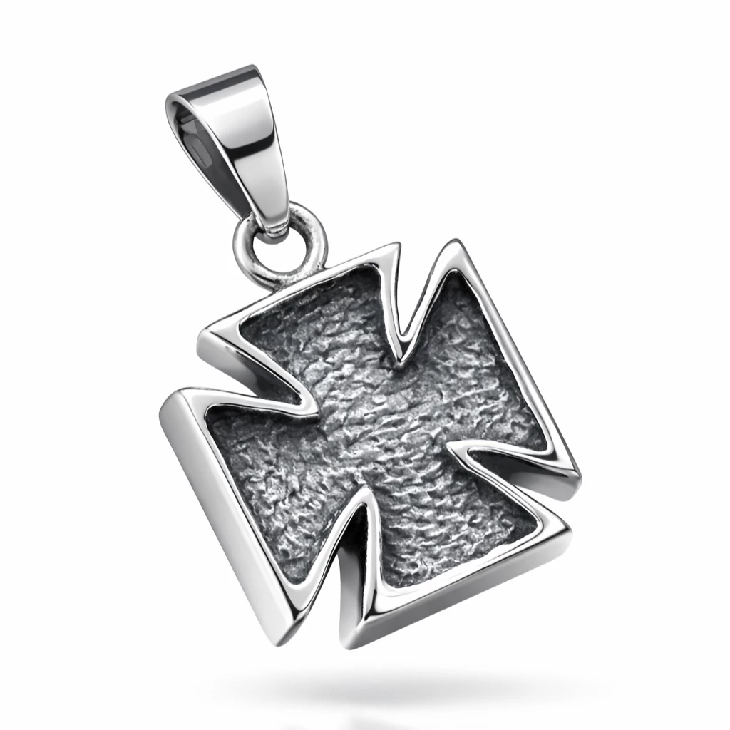 Masivní přívěsek ze Stříbra Ag 925/1000 ve tvaru maltézského kříže s výrazným černým smaltem.