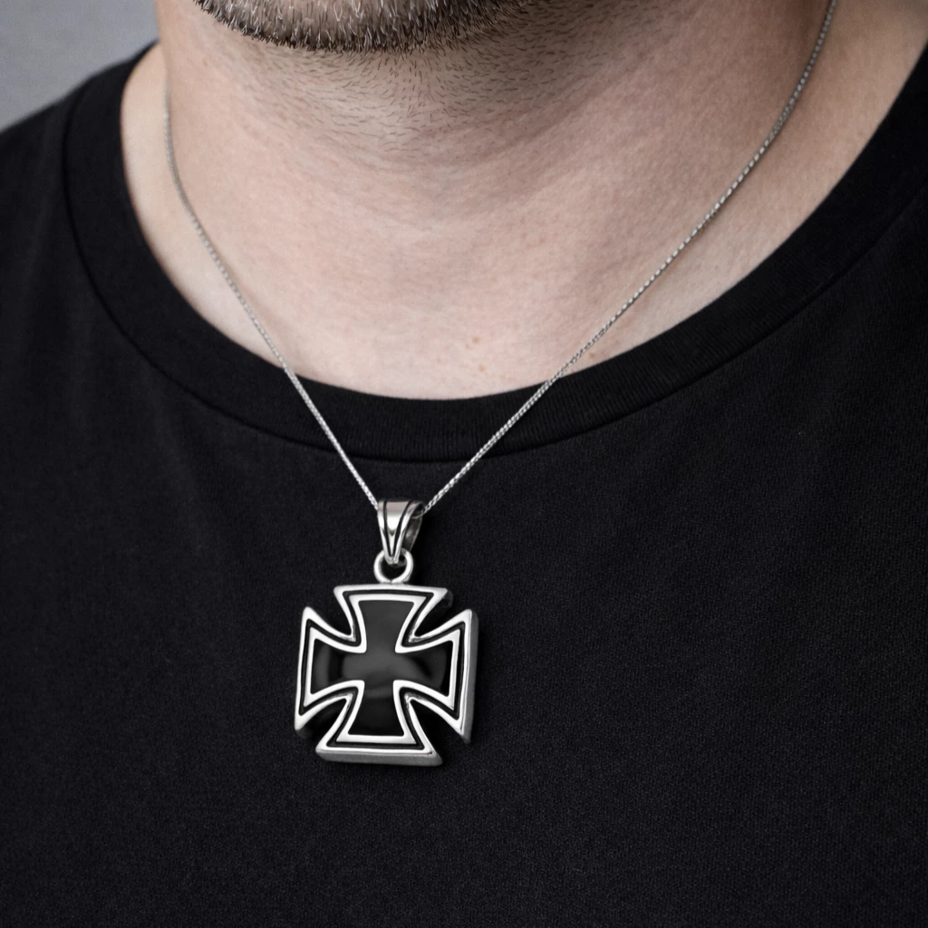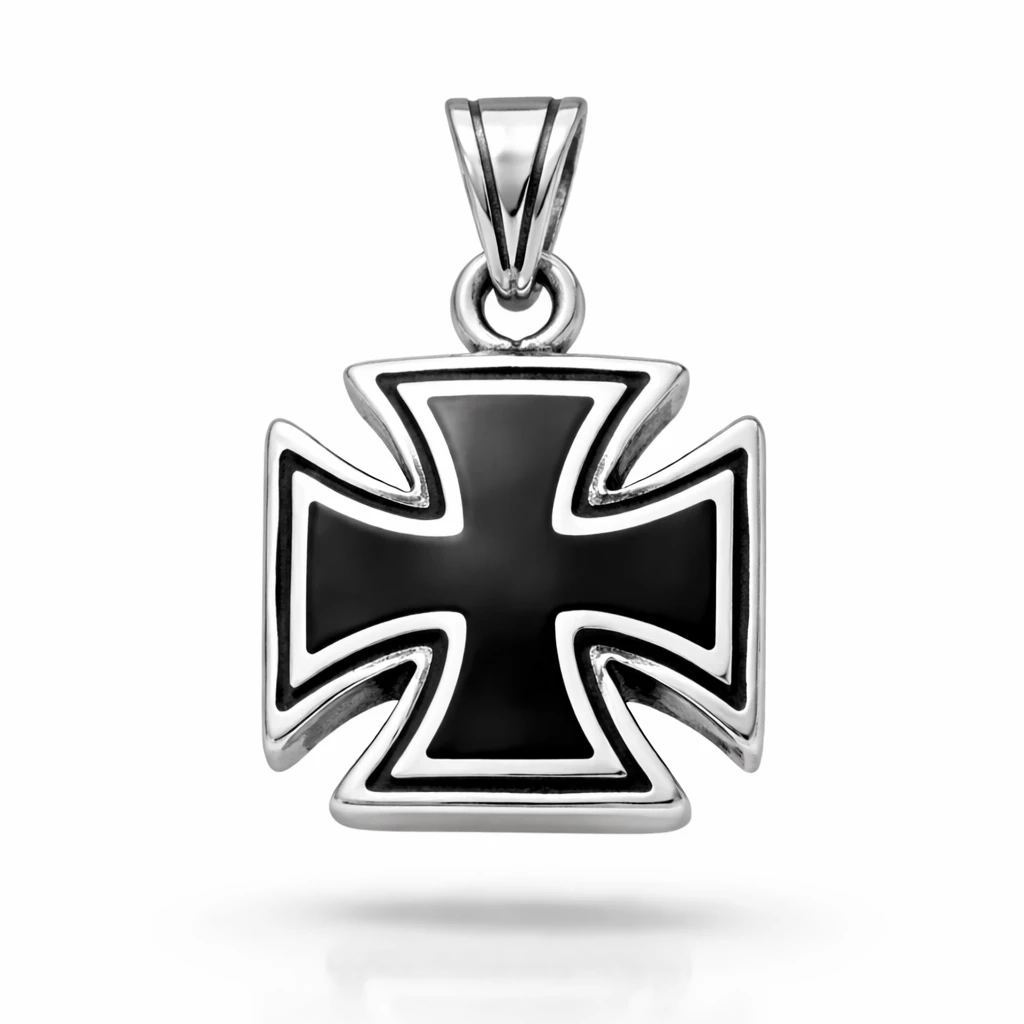 Stříbrný přívěsek maltézský kříž s černým smaltem je nadčasový doplněk, který podtrhne osobitý styl a stane se výrazným detailem každého dne.