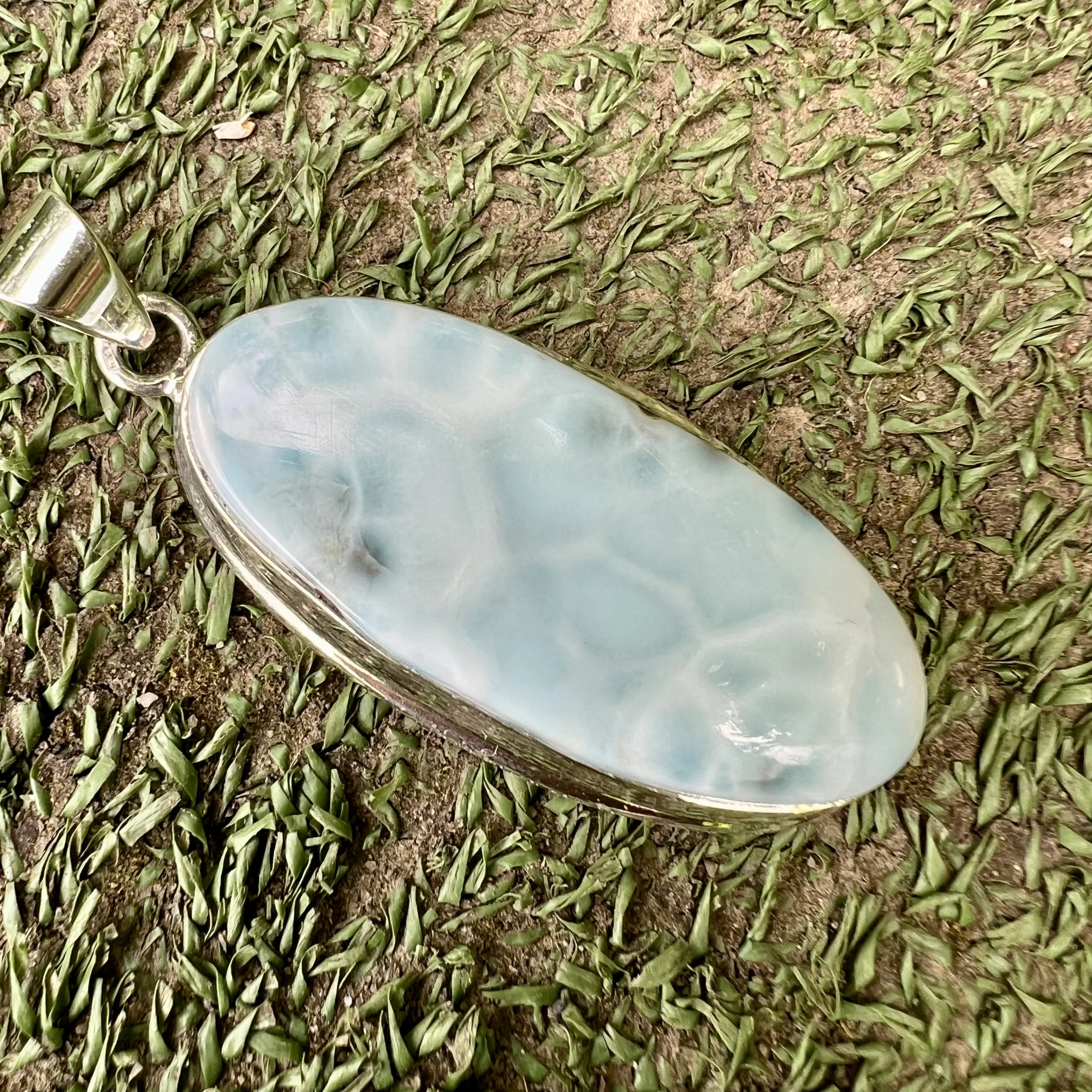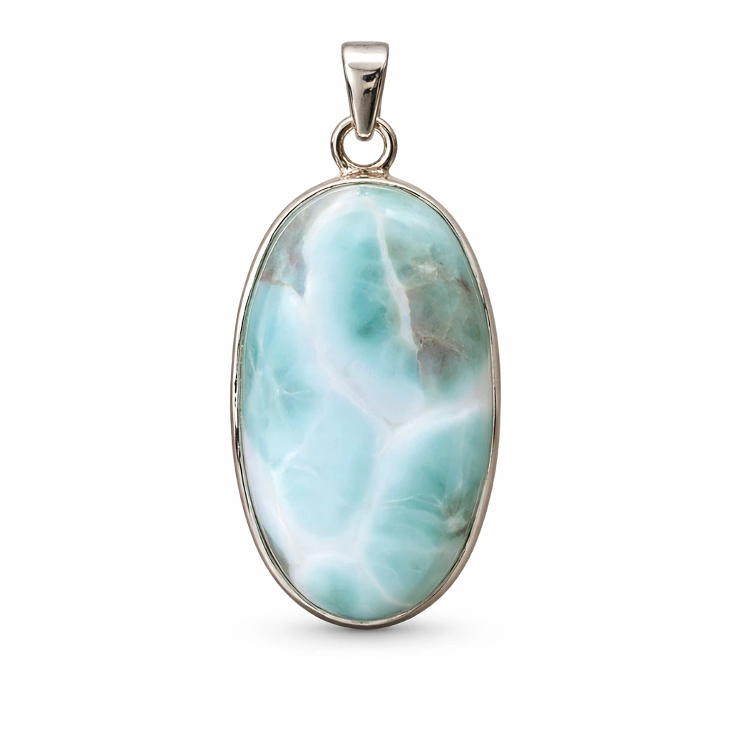 Stříbrný přívěsek s larimarem Veleina proud je vyroben ze kvalitního Stříbra Ag 925/1000 a osazen larimarem s typickými modrobílými tóny. Tvar proudu evokuje pohyb, volnost a přirozený tok energie, díky čemuž se přívěsek stává výrazným, ale stále jemným šperkem.