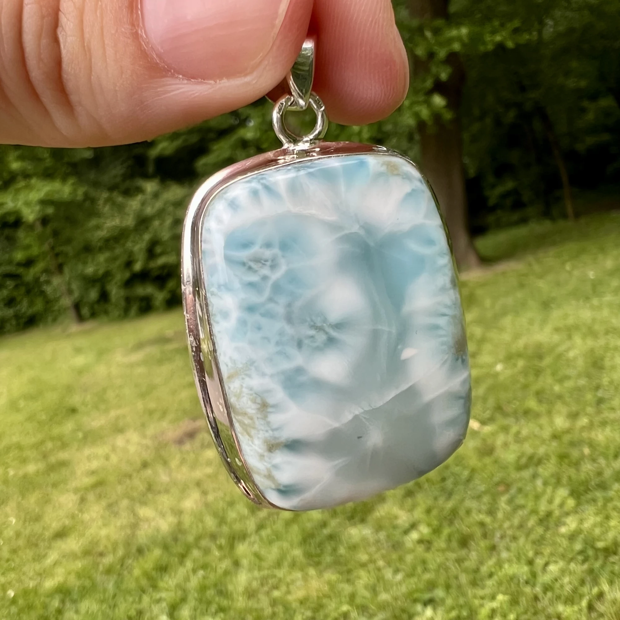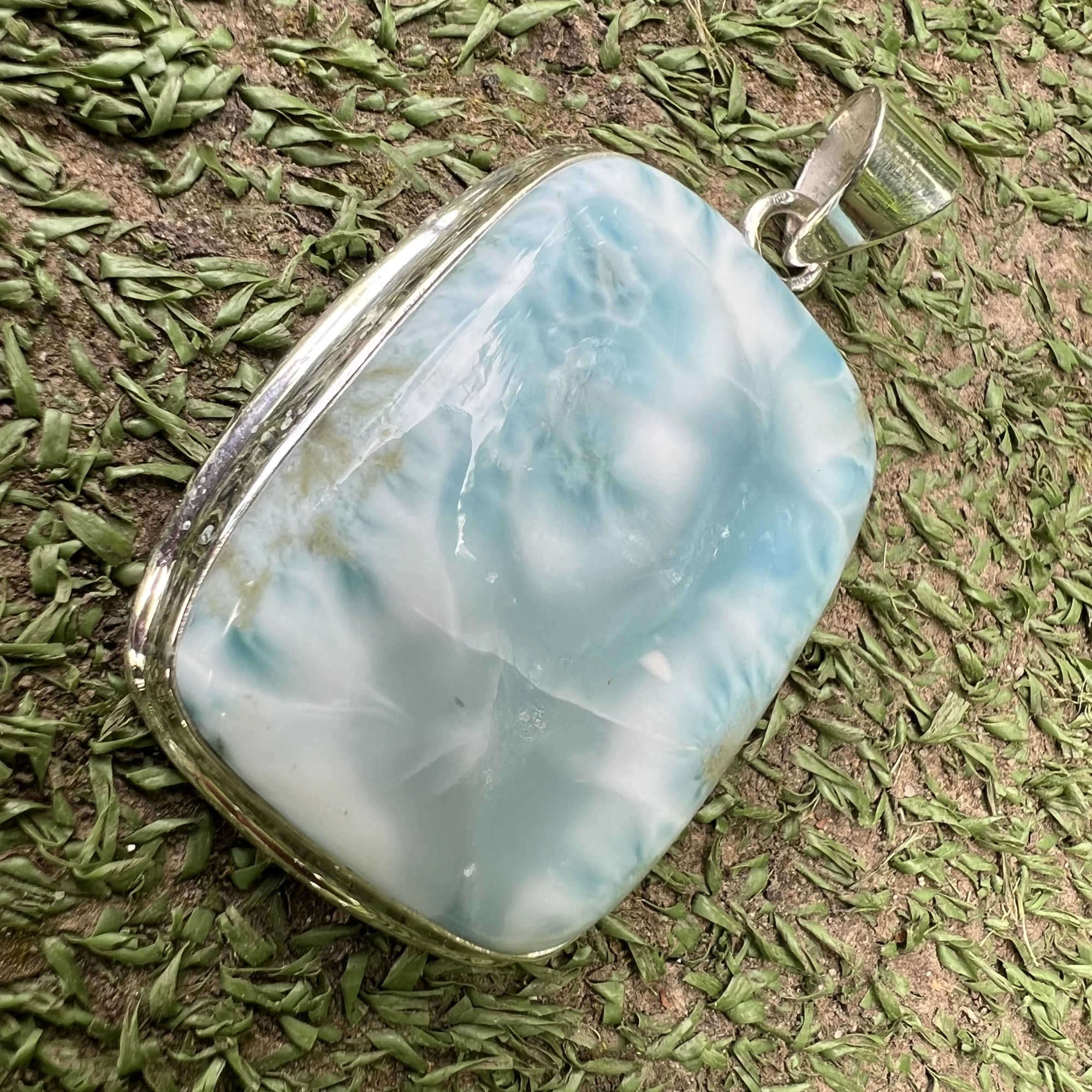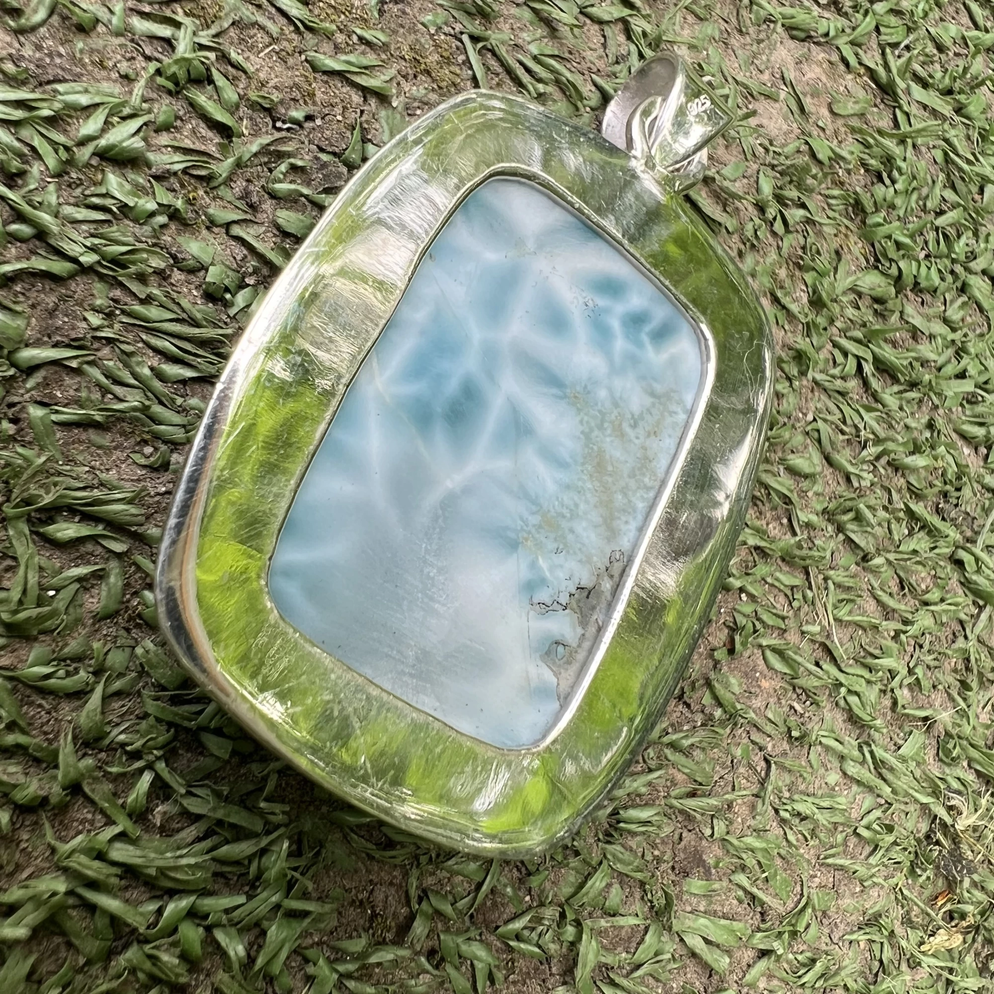 Stříbrný přívěsek s larimarem Veleina úlomek osloví svým autentickým, nepravidelným tvarem, který podtrhuje jedinečný charakter každého kusu. Šperk působí přirozeně, originálně a dává vyniknout kresbě larimaru.