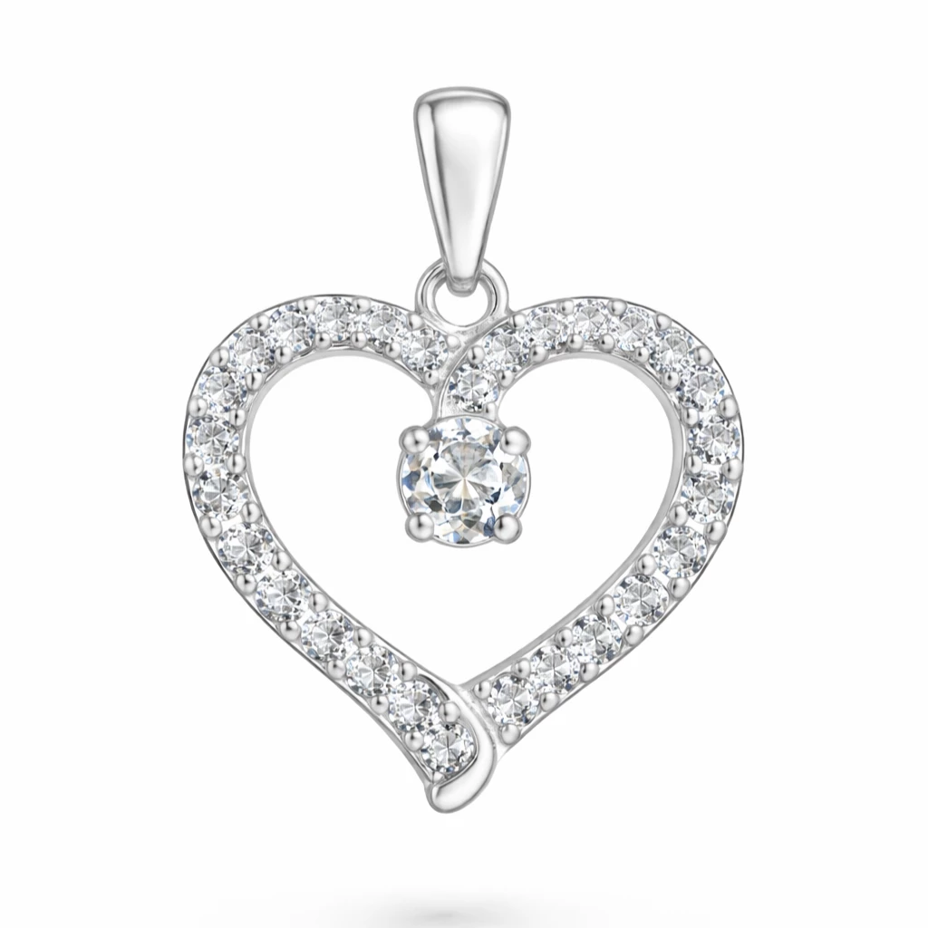 Pokud hledáte šperk, který je elegantní, nadčasový a zároveň má emoci, tohle stříbrné srdce se zirkony je přesně ono. Otevřený tvar srdce je osazen třpytivými zirkony a uprostřed ho doplňuje výraznější kamínek, díky kterému přívěsek působí luxusně i v jemném provedení.