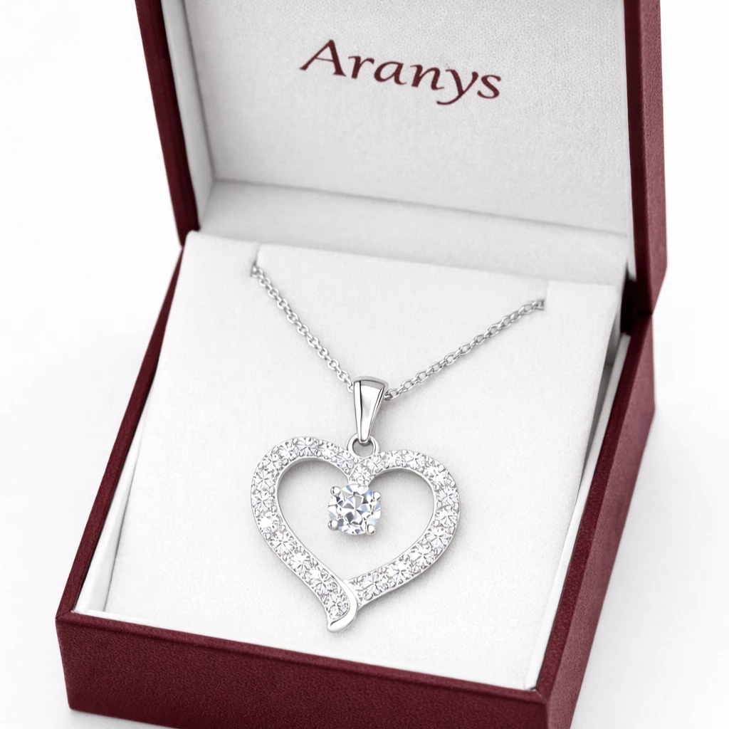 Stříbrné srdce se zirkony – jemný, ale výrazný přívěsek, který krásně rozzáří dekolt. Česká výroba a hlavně: vyrábíme ho přímo u nás v Aranysu, s důrazem na precizní zpracování a dokonale čistý třpyt.