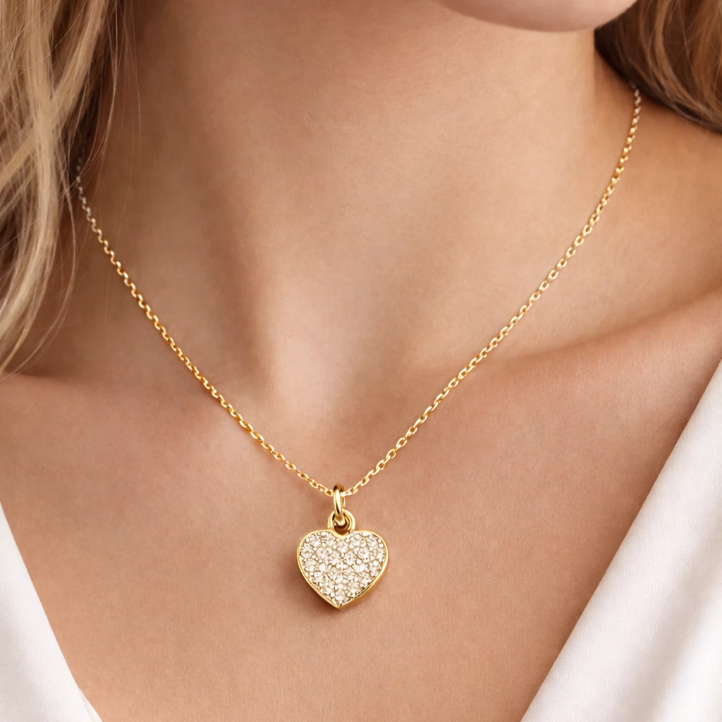 Jemný stříbrný přívěšek ve tvaru srdce je zdoben třpytivými zirkony (kubická zirkonie), které mu dodávají luxusní vzhled a decentní lesk. Elegantní provedení podtrhuje romantický charakter šperku.