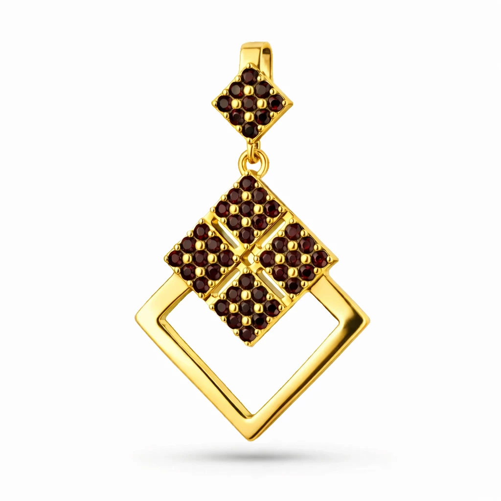 Stříbrný přívěsek s pravým českým granátem je vyroben z kvalitního Stříbra Ag 925/1000. Geometrický motiv s výraznými granáty vytváří elegantní a nadčasový šperk s hlubším symbolickým významem.