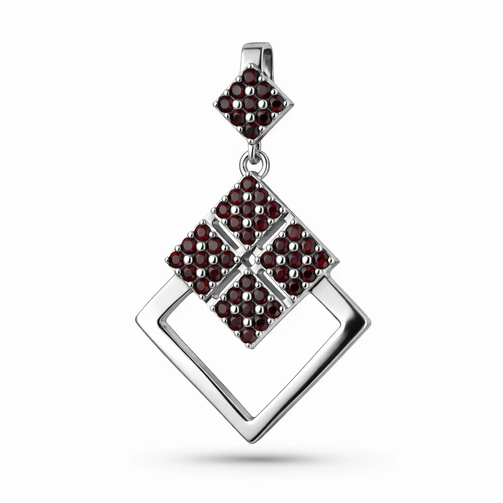 Stříbrný přívěsek Quadria s českým granátem je elegantním symbolem tradice, síly a nadčasového designu.