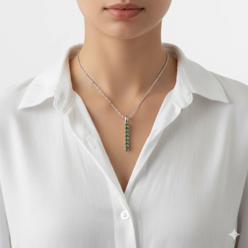 Skvostný stříbrný přívěsek se zeleným vltavínem. Perfektní doplněk na každodenní nošení i speciální příležitosti.