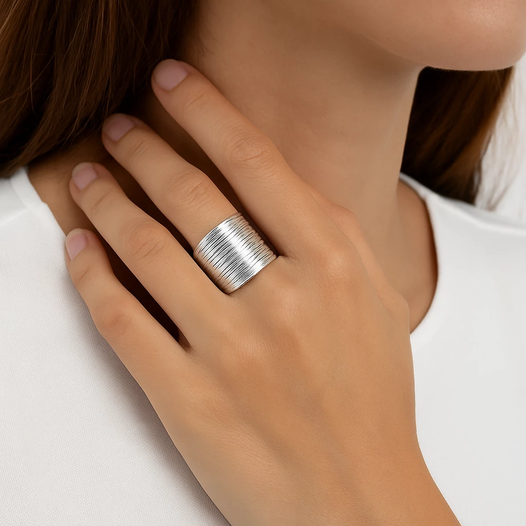 Skvěle se kombinuje s dalšími stříbrnými prsteny i minimalistickými šperky. Ideální volba pro ženy, které hledají výrazný a přitom elegantní doplněk.