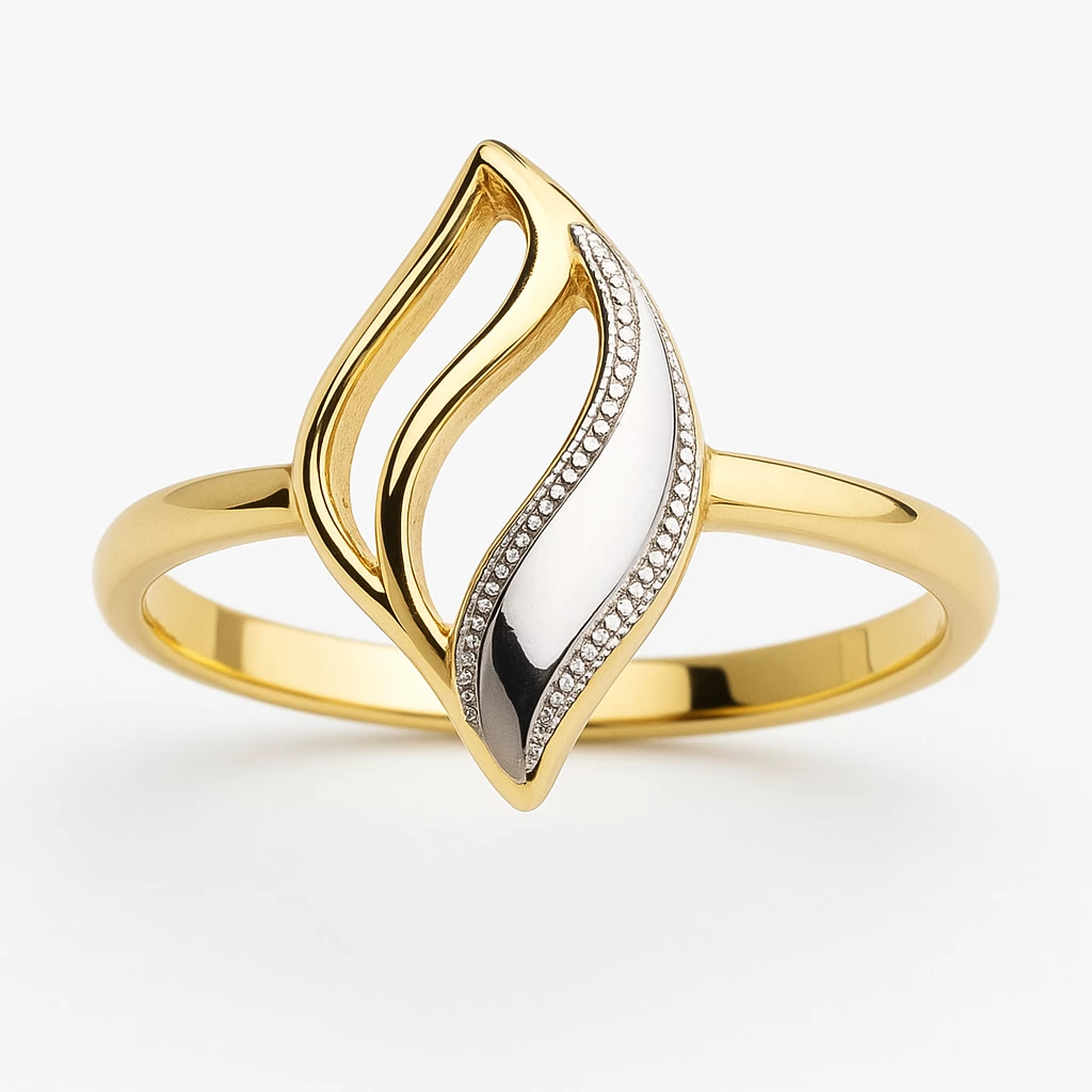 Elegentní jemný stříbrný prstýnek BICOLOR v oblíbeném tvaru vlnky zaujme svým trendy provedením se zlacením. Do soupravy nabízíme také náušnice a přívěsek.