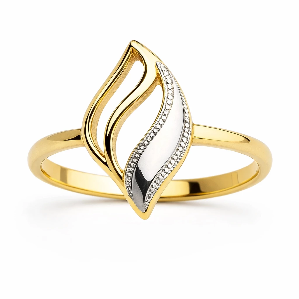 Tento jemný dámský stříbrný prsten se zlacením zaujme na první pohled svým skvostným zpracováním. Motiv jemné vlnky v kombinaci s dvěmi barvami působí nepřehlédnutelným dojmem. Doporučujeme si do soupravy k prstenu pořídit také přívěsek a náušnice.