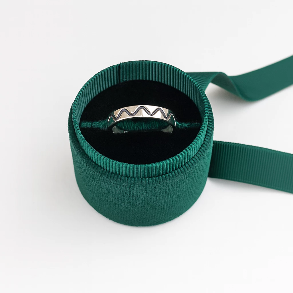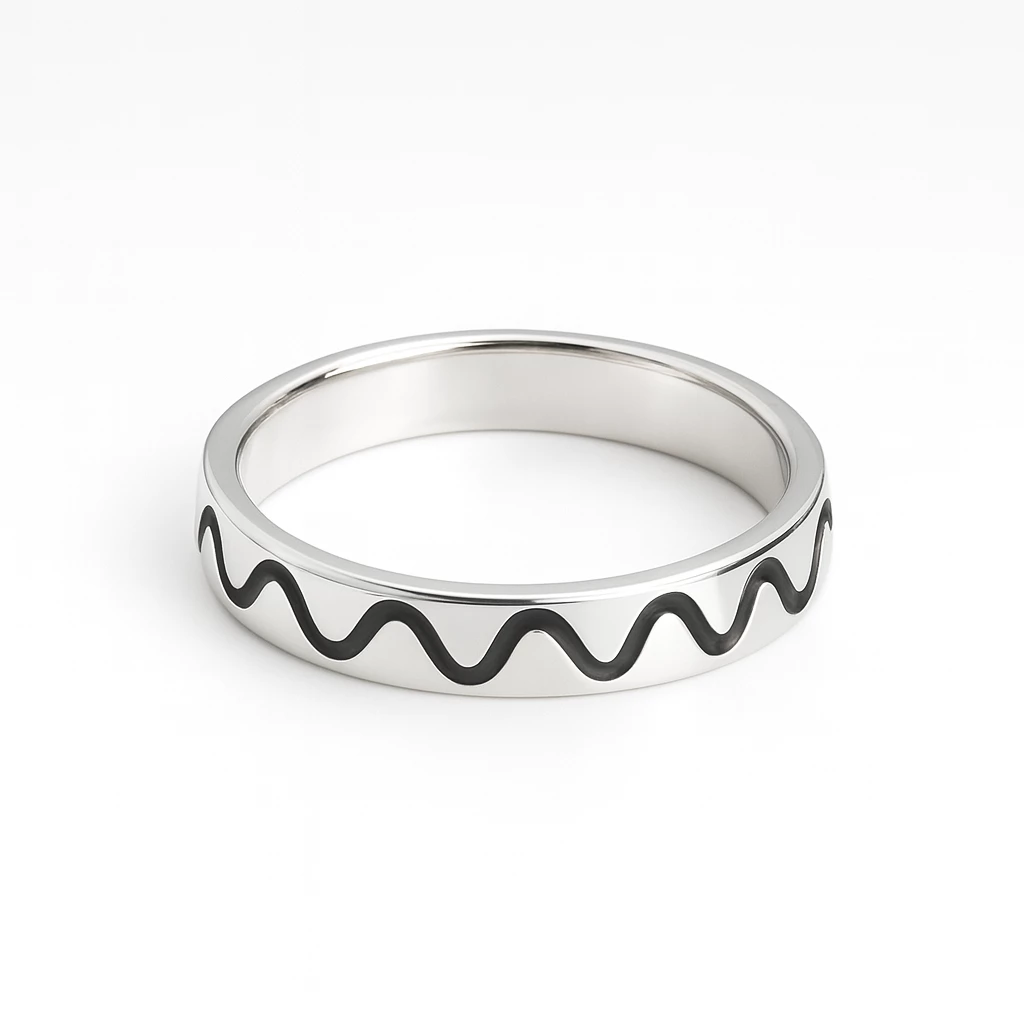 Trendy stříbrný prsten s rytím ve tvaru vlnky. Nabízíme ve velikosti 63.
