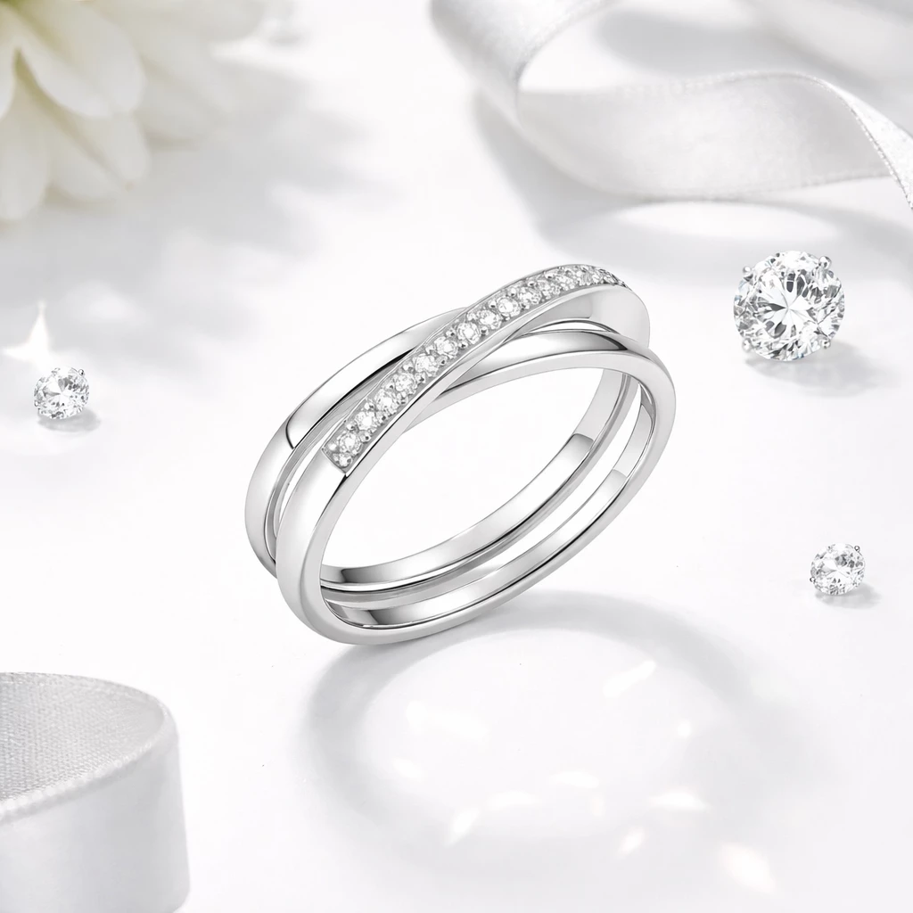 Propletené linie, jemný třpyt a čistý design vytvářejí šperk, který působí lehce, moderně a přirozeně elegantně.