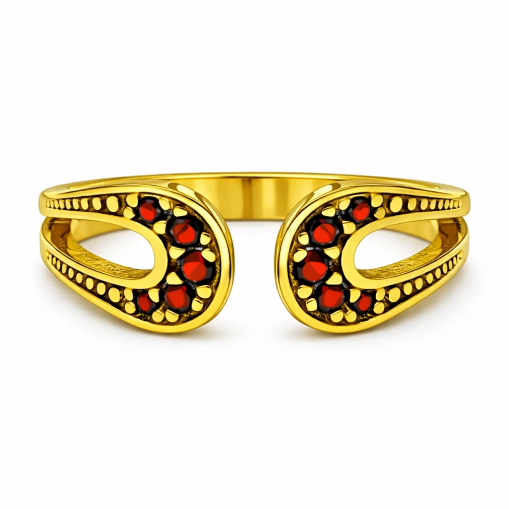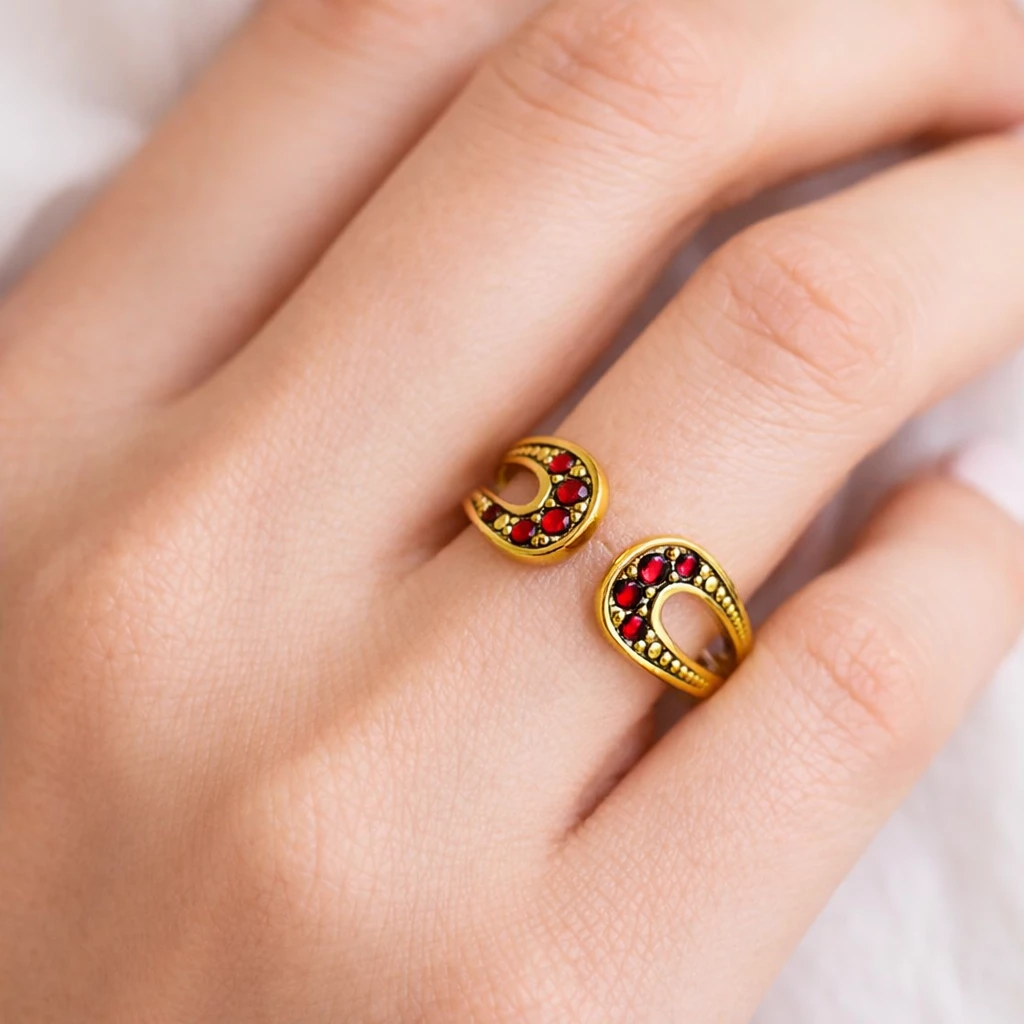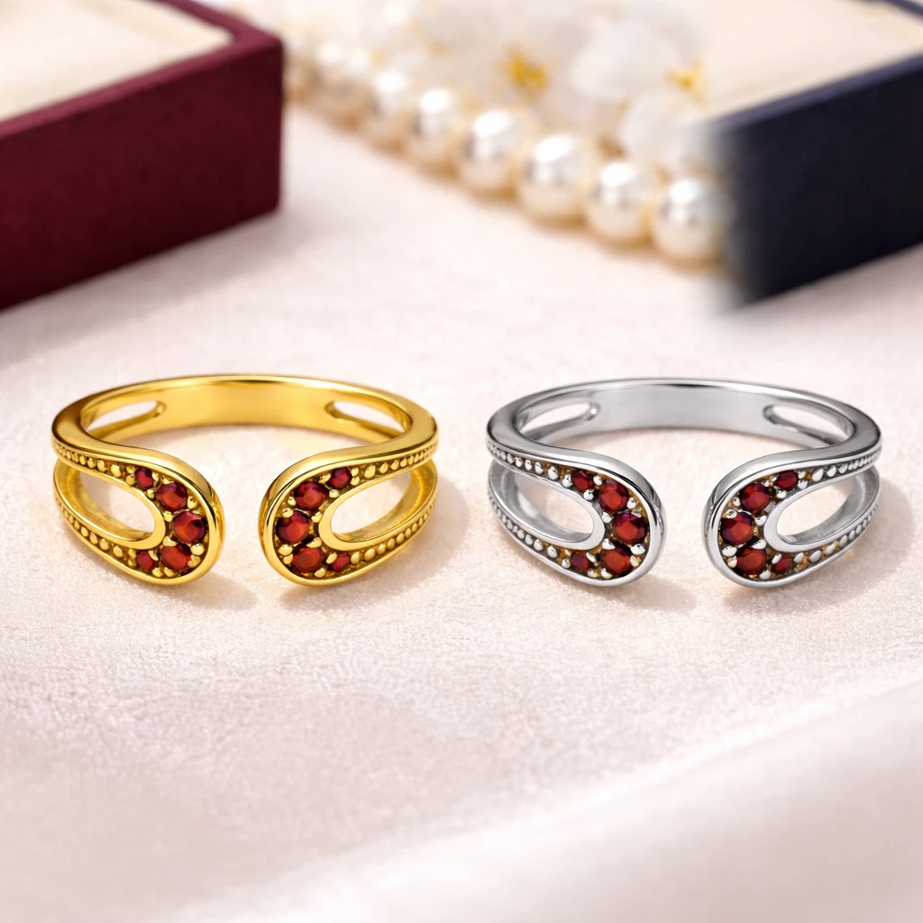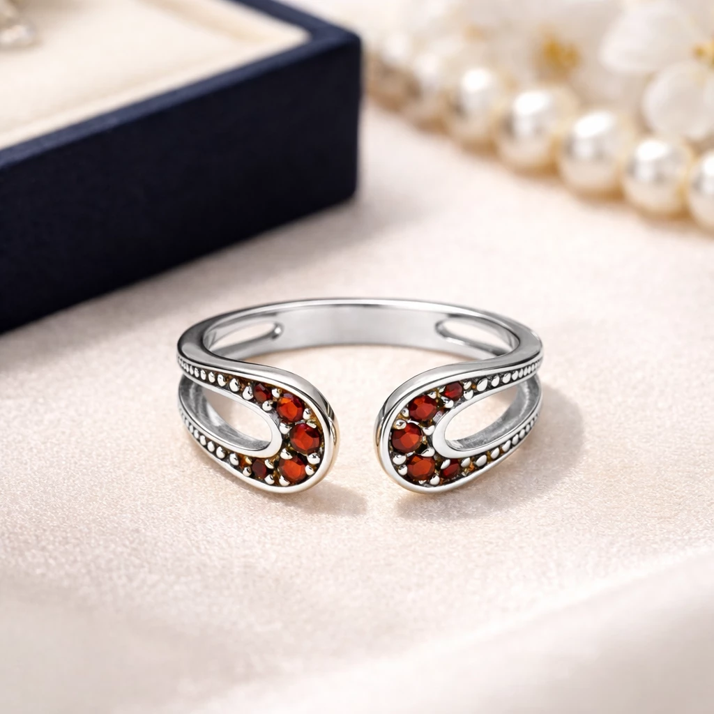 Stříbrný roztahovací prsten Granátové objetí je jemný a přesto nepřehlédnutelný šperk, který propojuje eleganci českého granátu s autorským rukopisem Aranys a dodá vašemu stylu osobitý, nadčasový akcent.