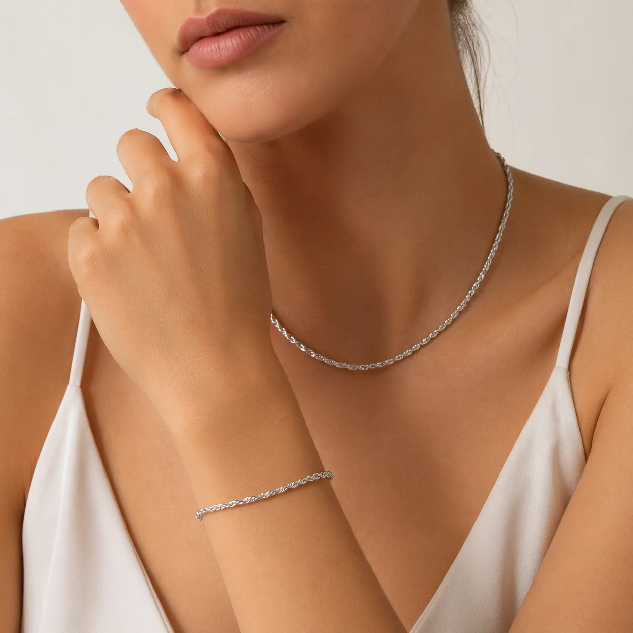 Stříbrný řetízek kroucený řetízek vhodný jak k samostatnému nošení, tak i k zavěšení přívěsků.