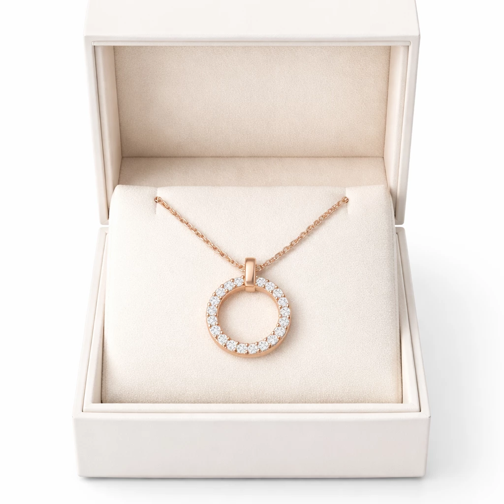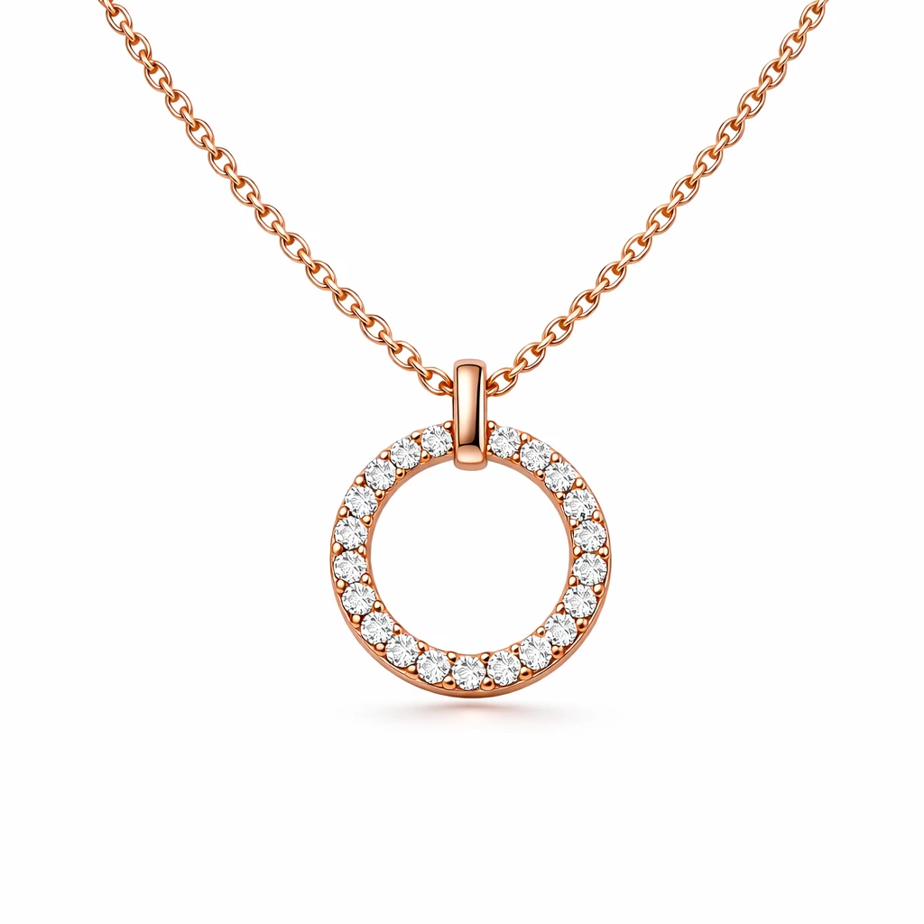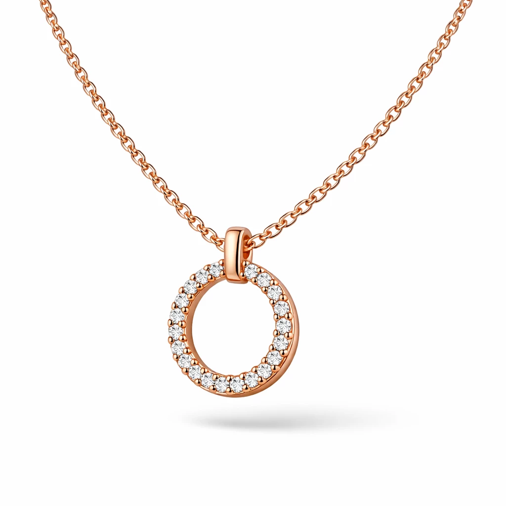 Stříbrný náhrdelník kruh se zirkony rose gold Cirilla je elegantním doplňkem, který podtrhne ženskost a vytříbený styl. Symbol kruhu představuje harmonii a nadčasovost.