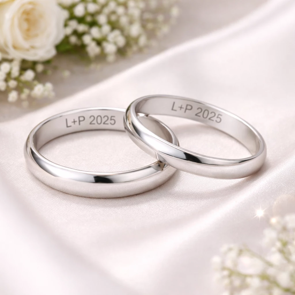 Minimalistický stříbrný snubní prsten s hladkým povrchem vyrobený ze Stříbra Ag 925/1000 s povrchovou úpravou rhodiování.