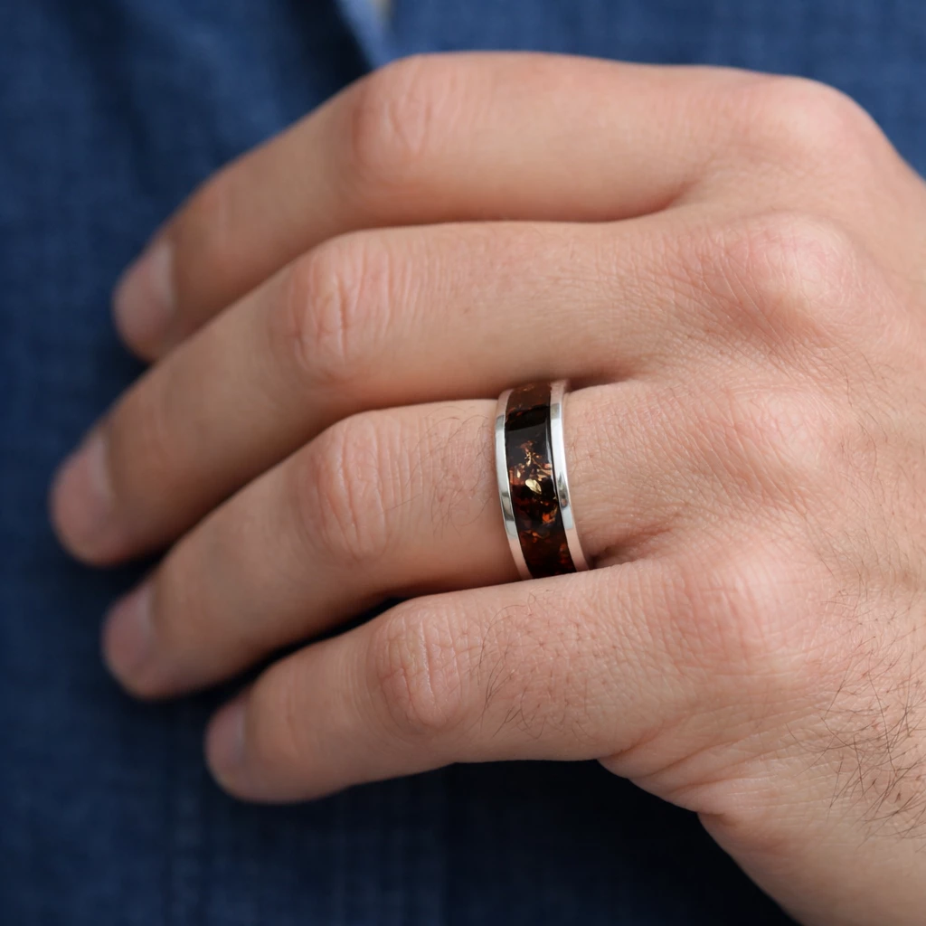 Stříbrný prsten s jantarem Exkluziv je vyroben ze Stříbra Ag 925/1000 a doplněn o výrazný přírodní jantar, který dodává šperku neopakovatelný charakter. Každý kus je jedinečný svou kresbou, strukturou i odstíny.