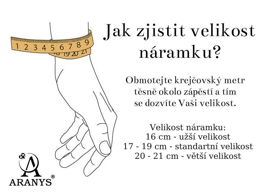 Záleží potom na Vás jestli budete chtít náramek upnutý nebo naopak volnější. V případě zájmu o volnější náramek, pak přičtěte 1 cm. Je jen na Vás, jak se cítíte pohodlně. Celou naší náramkovou kategorii najdete na našem webu: aranys.cz