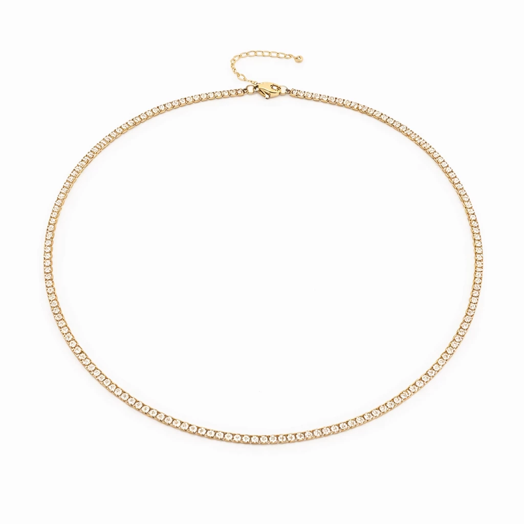 Jemný náhrdelník z chirurgické oceli se zirkony a zlacenou povrchovou úpravou působí elegantně, nadčasově a krásně doplní každý outfit.