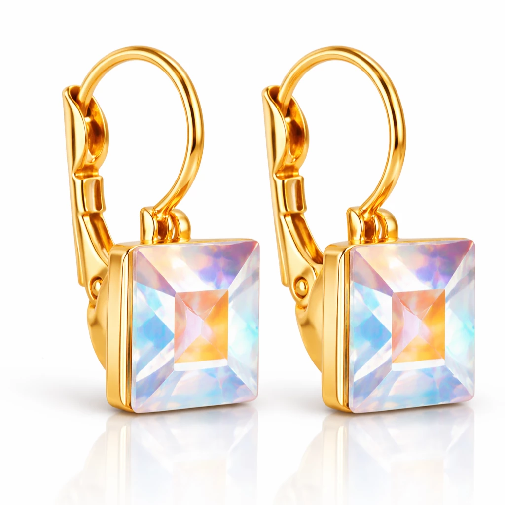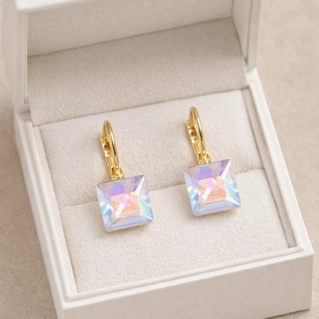 Šperky s kameny Swarovski jsou vzhledem ke svému preciznímu brusu nepřehlédnutelné za jakékoliv situace. Třpytivé dámské náušnice s motivem čtverečků vám nabízíme ve zlaceném provedení a stanou se vaším oblíbeným doplňkem pro každý den. Vzhledem k jejich jemnosti jsou vhodné také pro malé slečny. O pohodlné a bezpečné nošení se postará zapínání na klapku. Ve filtru si vyberete barvu.