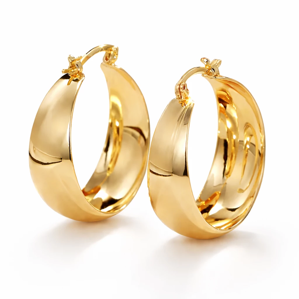 Elegantní zlacené kruhové náušnice z chirurgické oceli 18kt s luxusním zlatým leskem. Nadčasový doplněk vhodný pro každodenní nošení i slavnostní příležitosti.