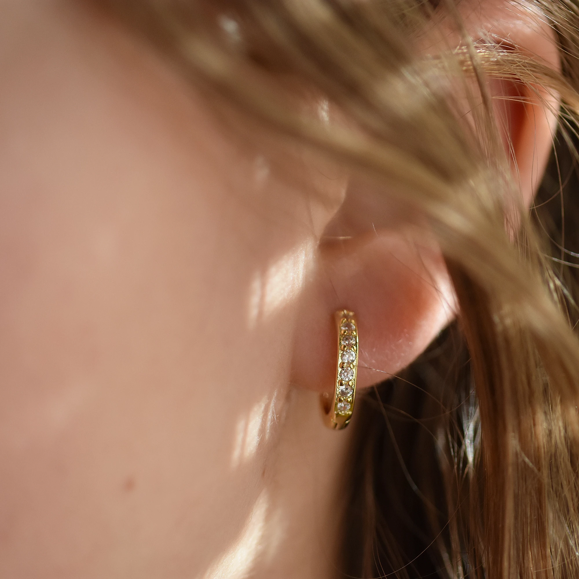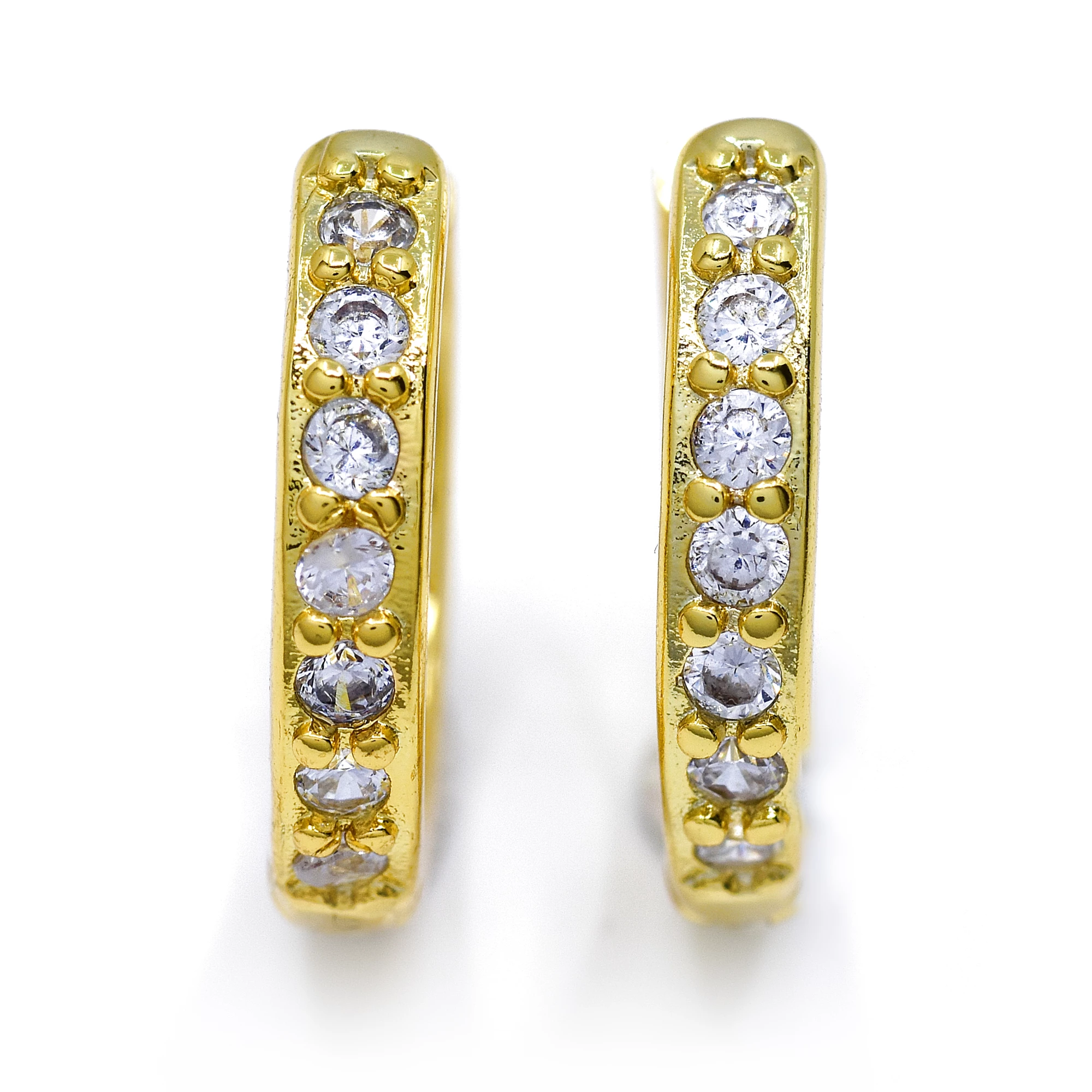 Zlacené náušnice kroužky jsou zárukou elegance a skvěle se hodí na jakoukoli příležitost. Náušnice jsou z chirurgické oceli, ale zapínání náušnice je ve stříbře. Třpytivé čiré krystalky dodávají na atraktivitě a působí nepřehlédnutelně. Náušnice skvěle sladíte s ostatními zlacenými produkty z naší nabídky. Zapínání je zacvakávací. Nabízíme v několika velikostech - zvolíte si ve filtru.