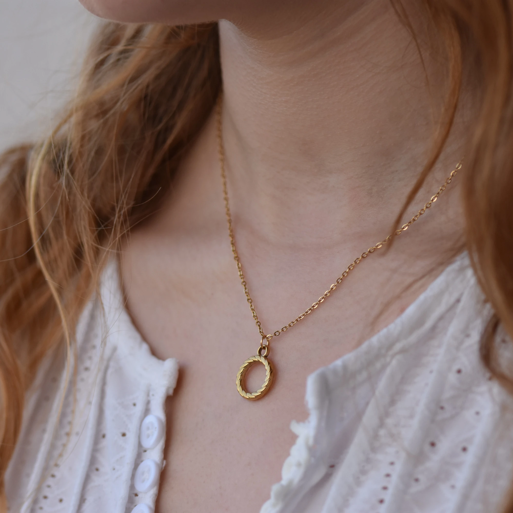 Dámský zlacený ocelový náhrdelník s motivem kruhu bude zárukou elegance a trefou do černého.