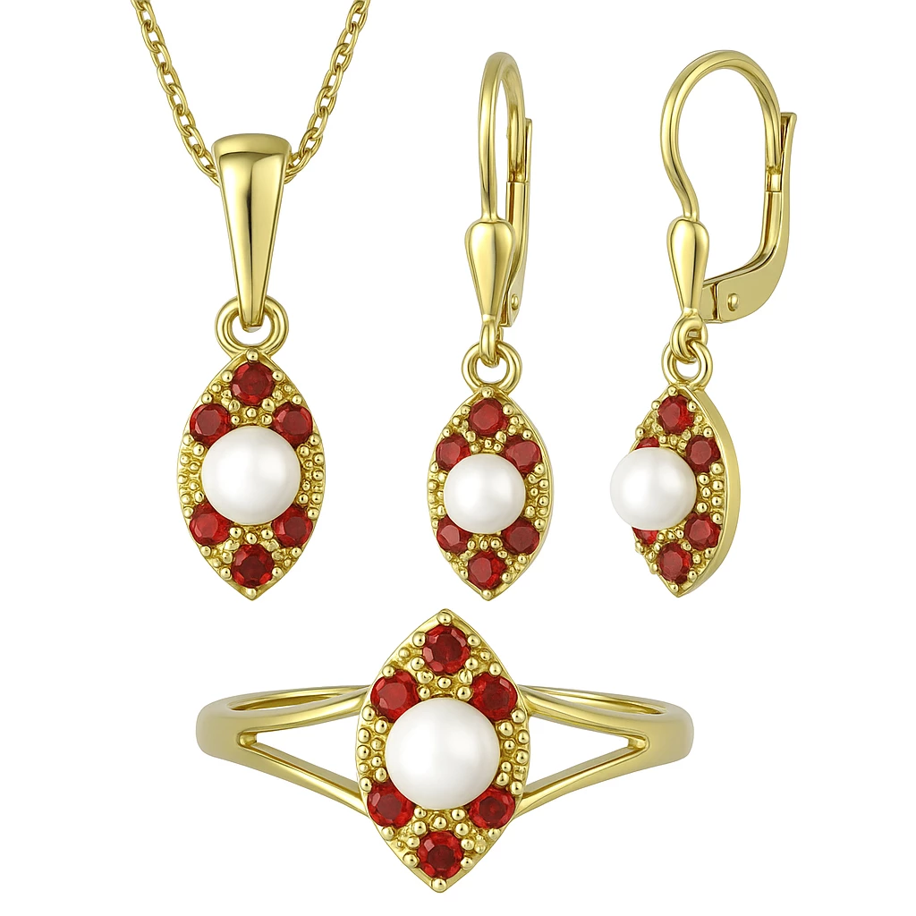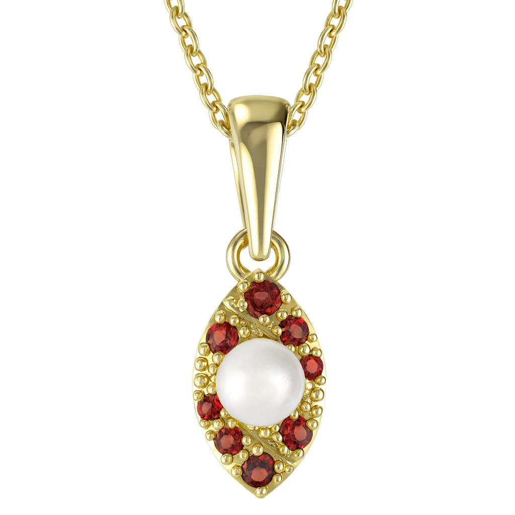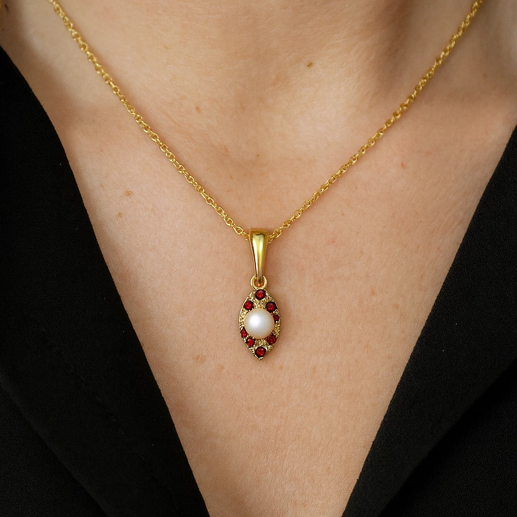 Dokonalé spojení perel s českými granáty a zlata budete mít v tomto přívěsku. Můžete si vybrat i variantu v bílém zlatě.