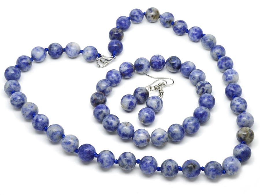 Celou soupravu náramku, náušnic i náhrdelníku ze sodalitu si můžete dopřát, pokud se rádi obklopujete modrou barvou. Modrá je velmi pozitivní v mnoha směrech a navíc sodalit má velmi příznivé účinky na tělo i duši.